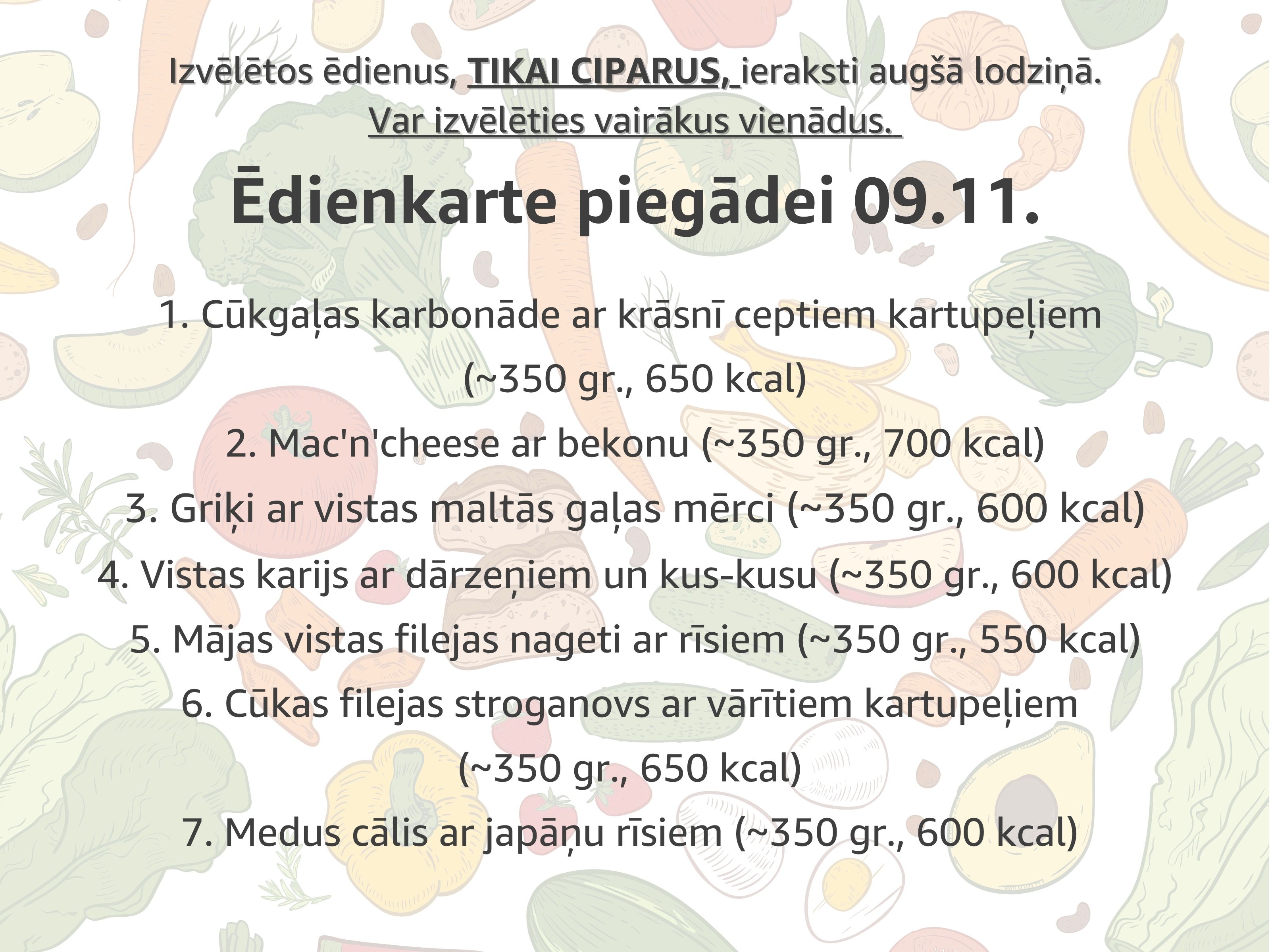 Ēdienu NUMURUS (tikai ciparus) ieraksti šeit (var būt vairāki vienādi) :