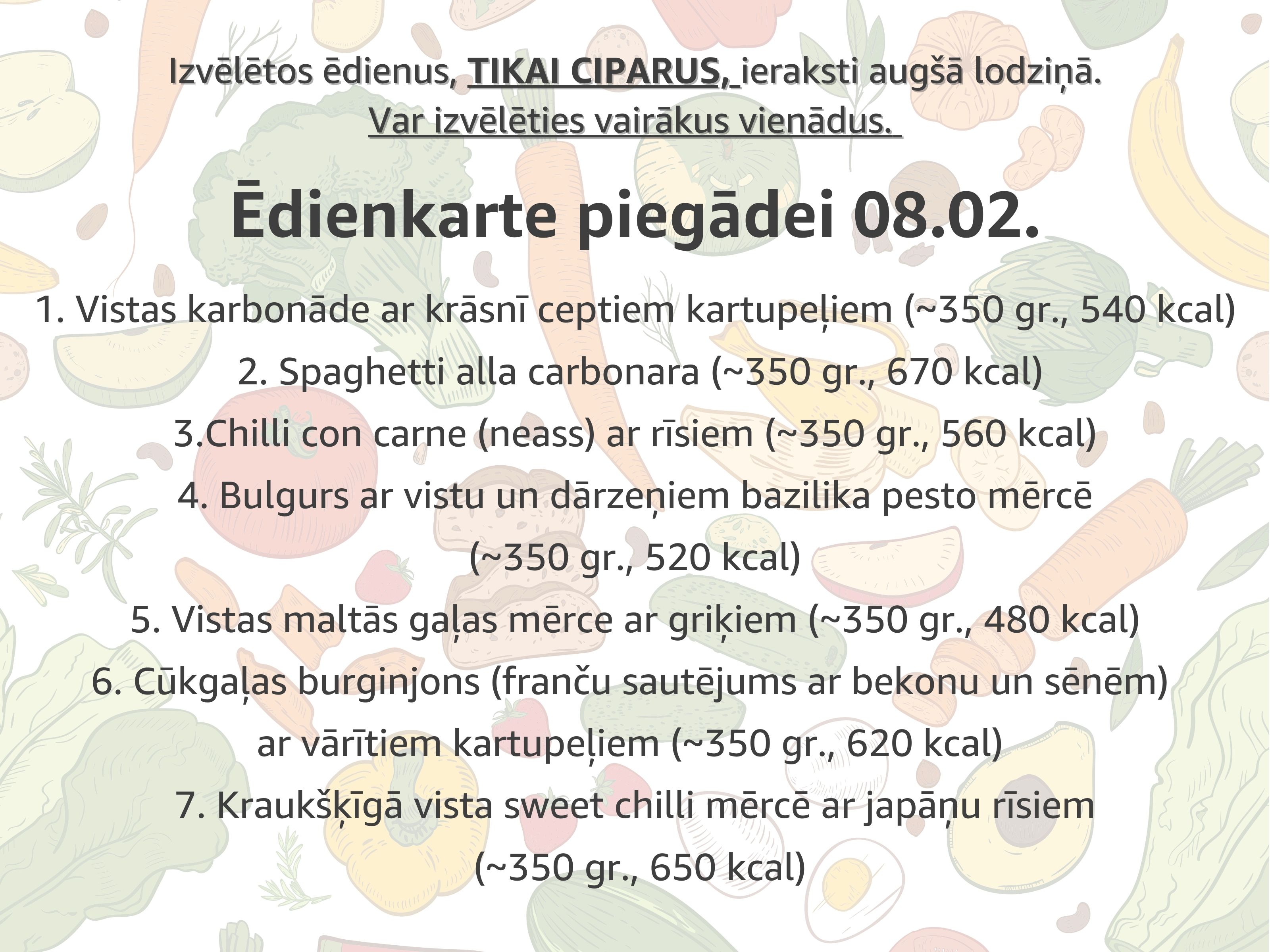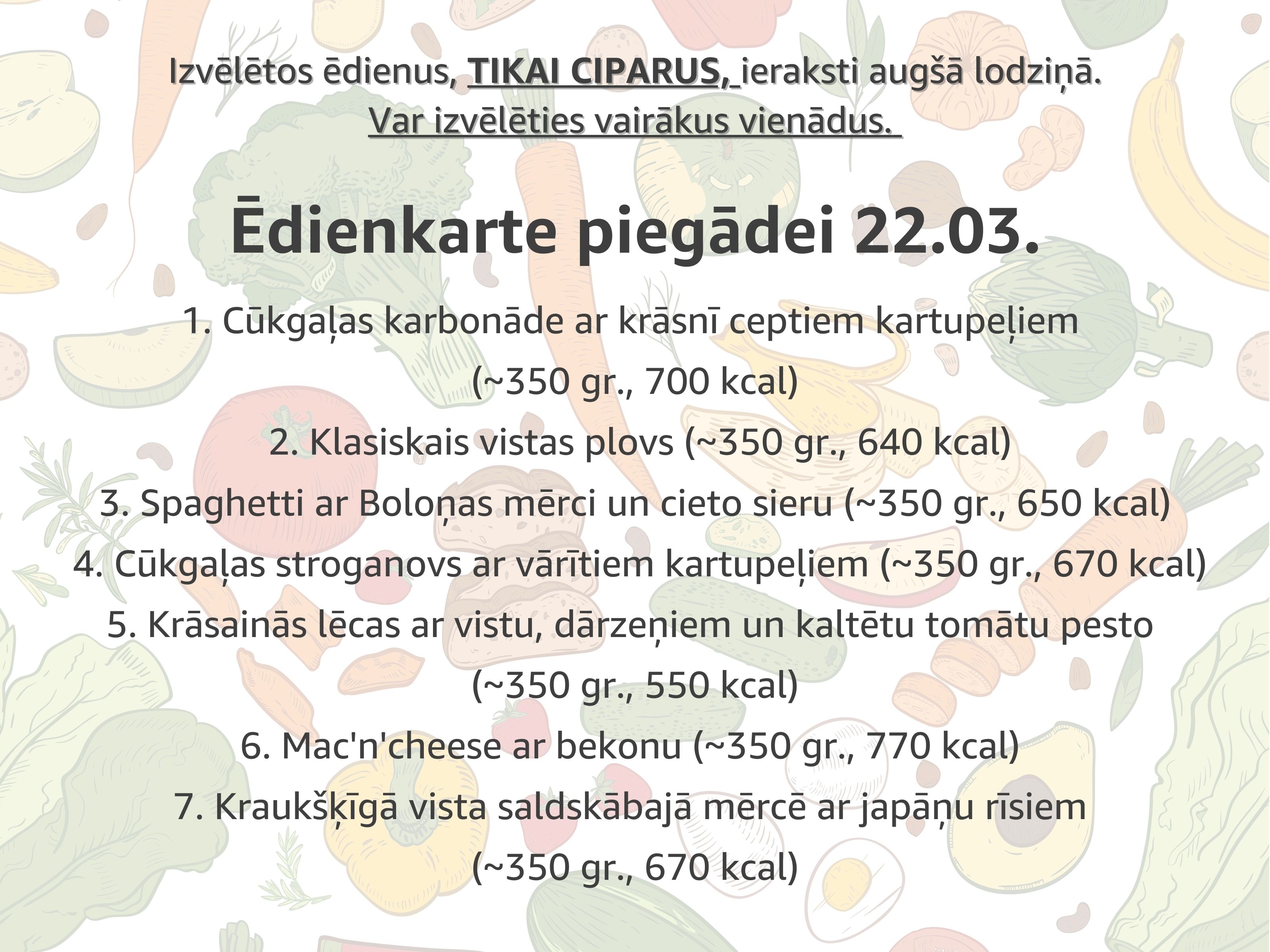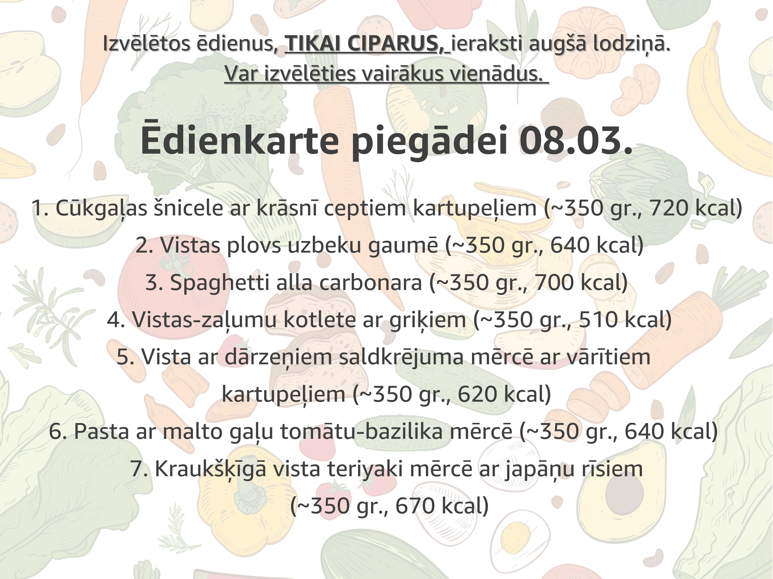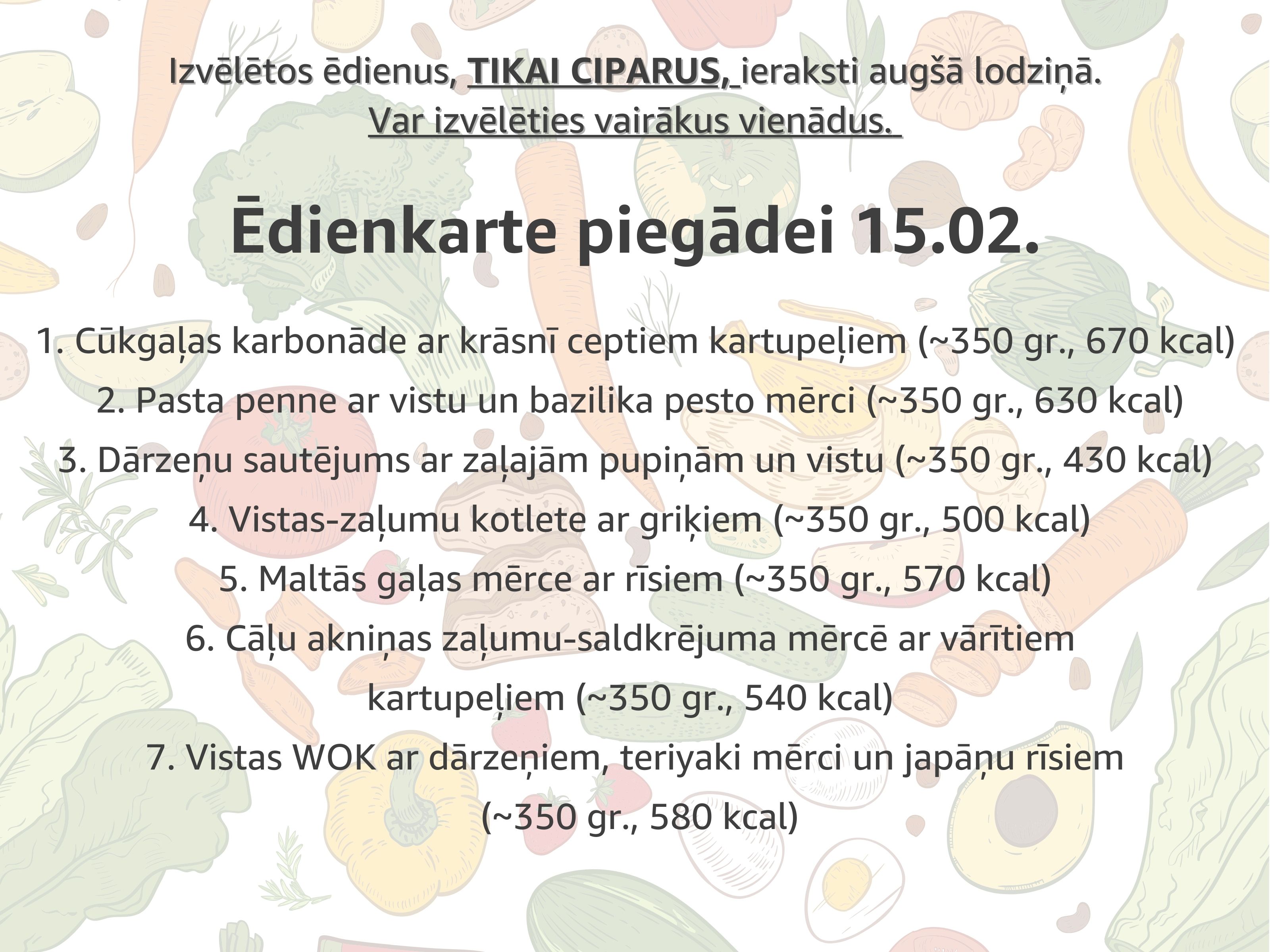 Ēdienu NUMURUS (tikai ciparus) ieraksti šeit (var būt vairāki vienādi) :